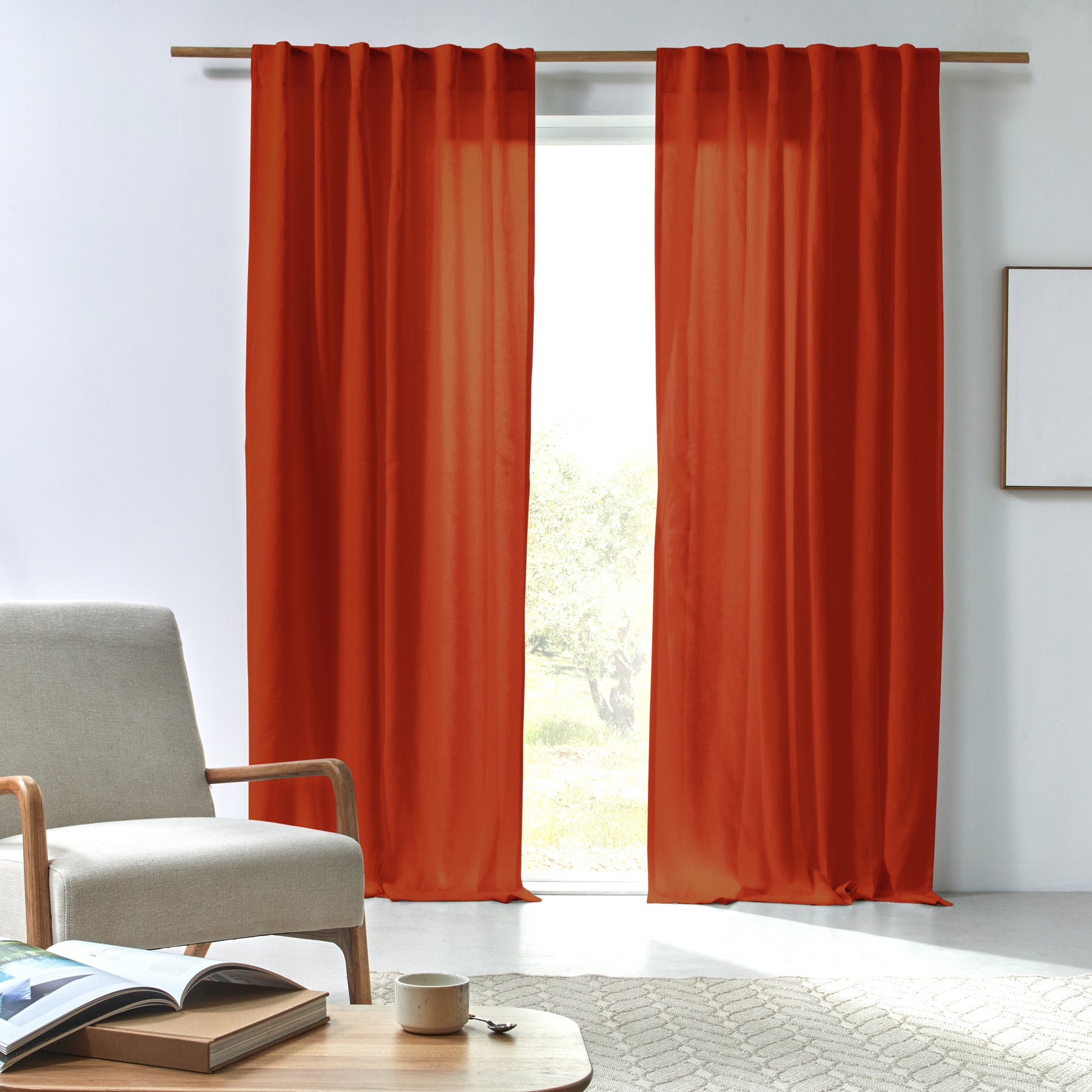 Cortina de lino arrugado coral