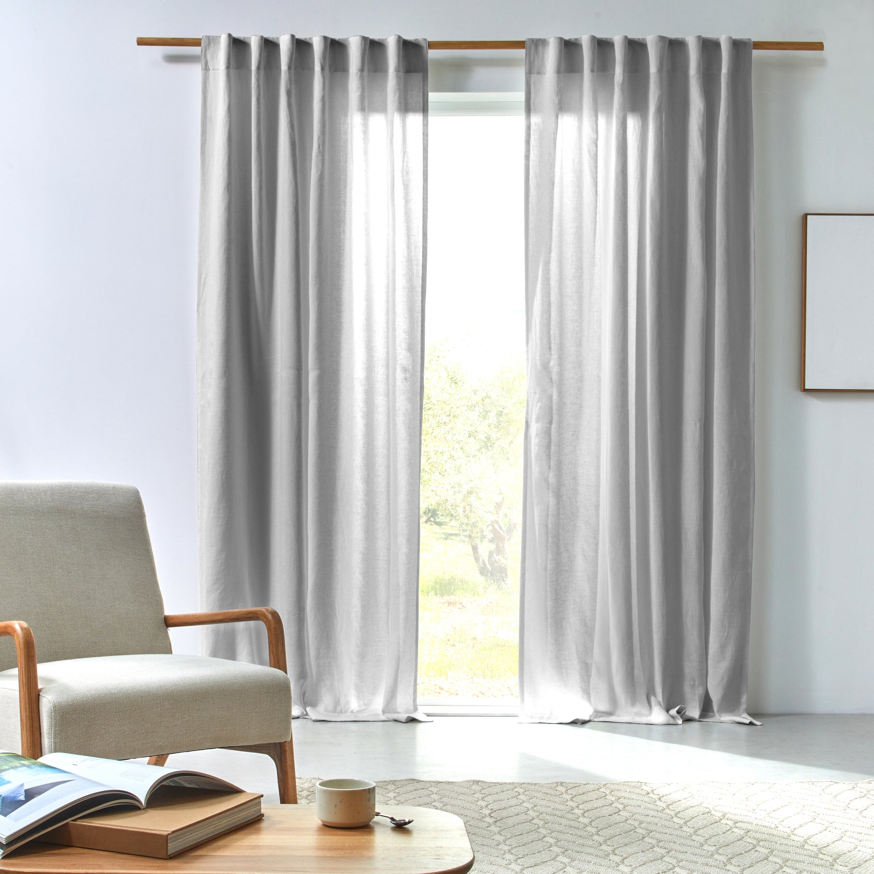 Cortina de lino arrugado gris mineral