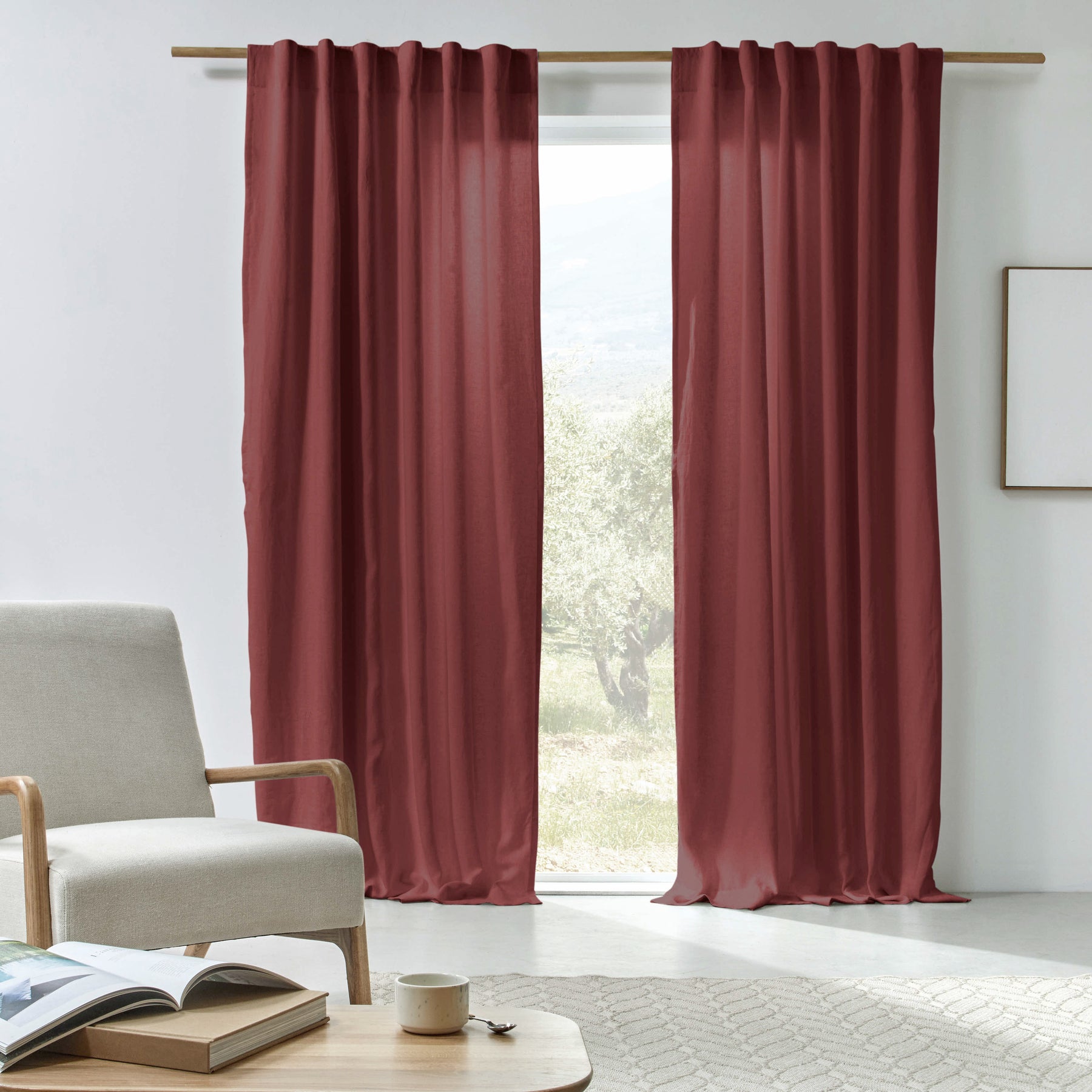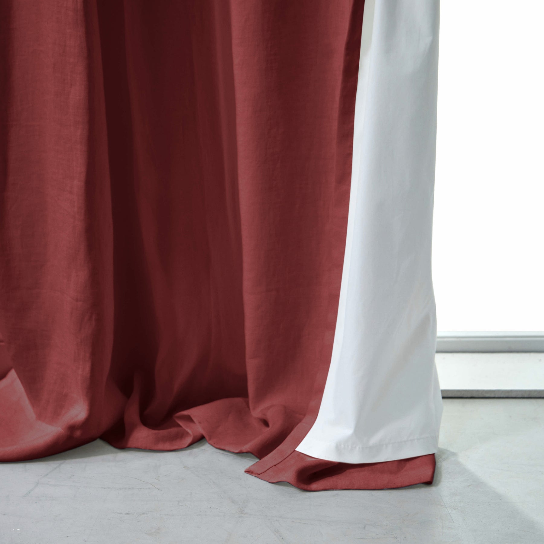Cortina de lino con forro de algodón rojo ladrillo