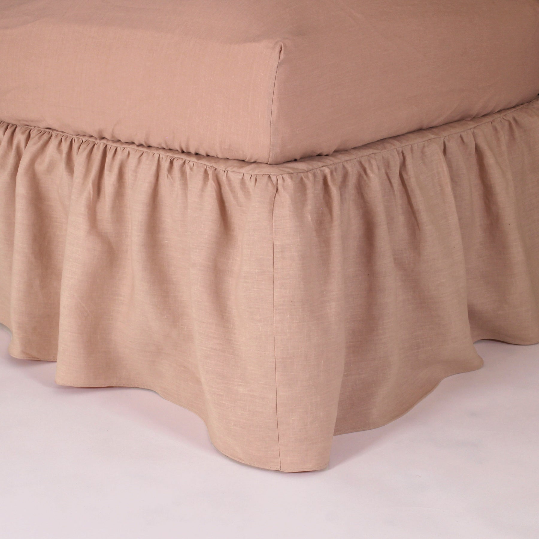 Cubre-sommier de lino con frunces (Rosa Viejo)