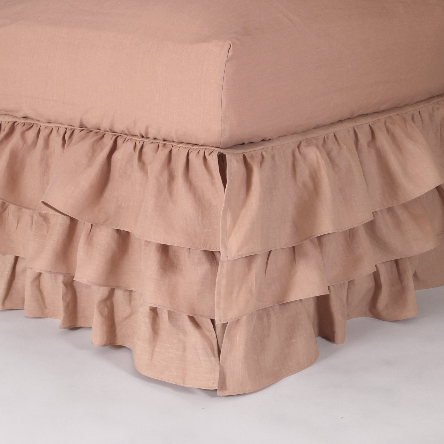 Cubre-sommier de lino con volantes en cascada, Rosa Viejo