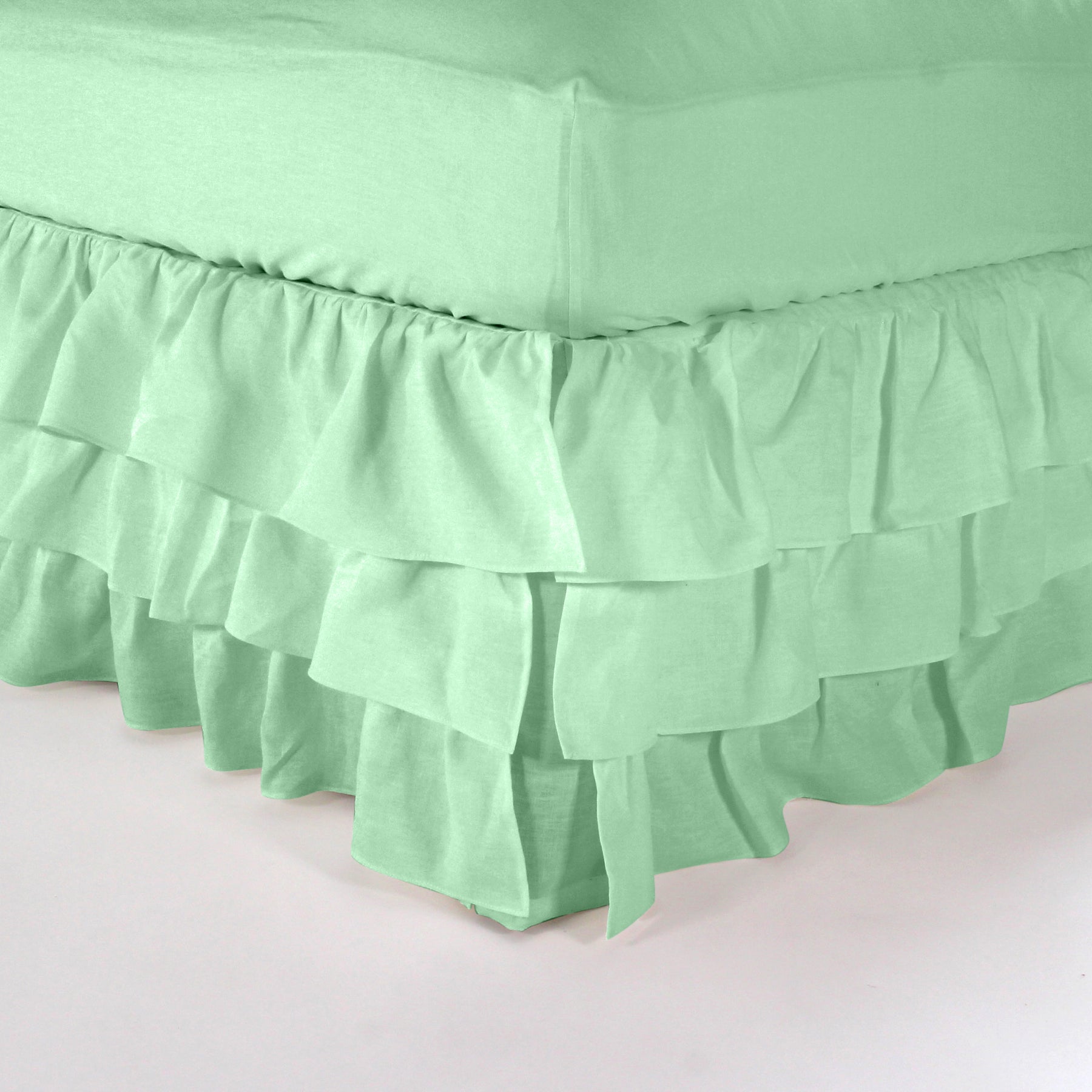 Cubre-sommier de lino con volantes en cascada, Verde menta