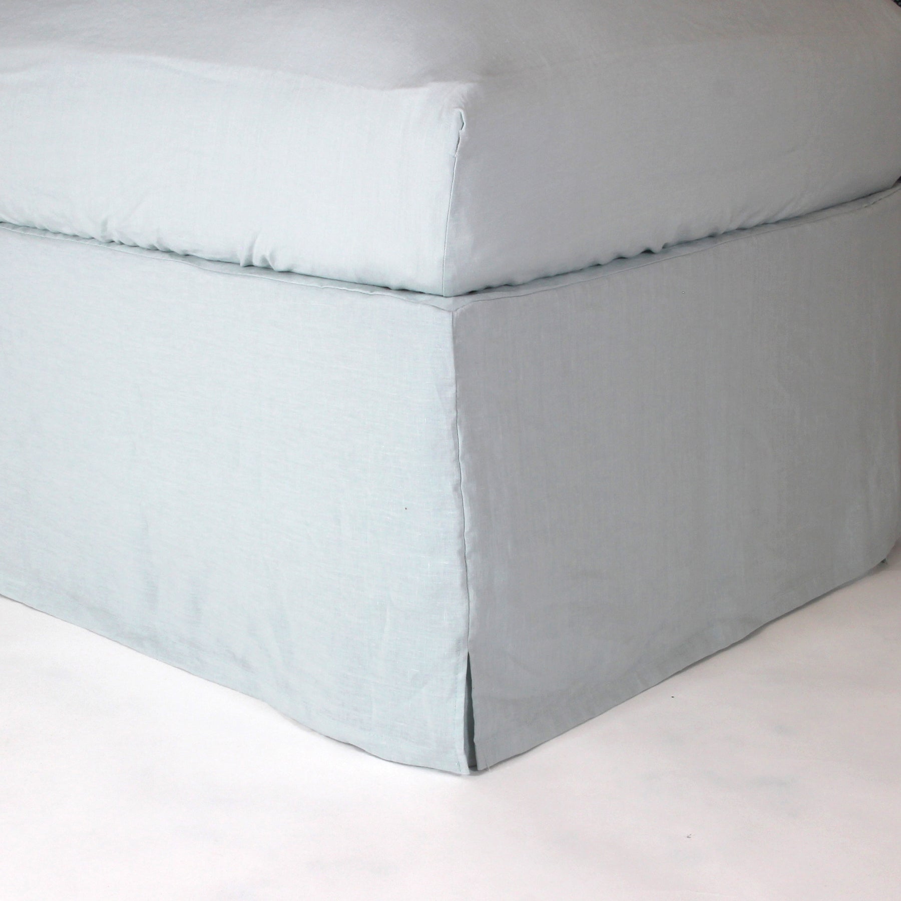 Cubre-sommier de lino lavado con esquinas cerradas (Azul glaciar)