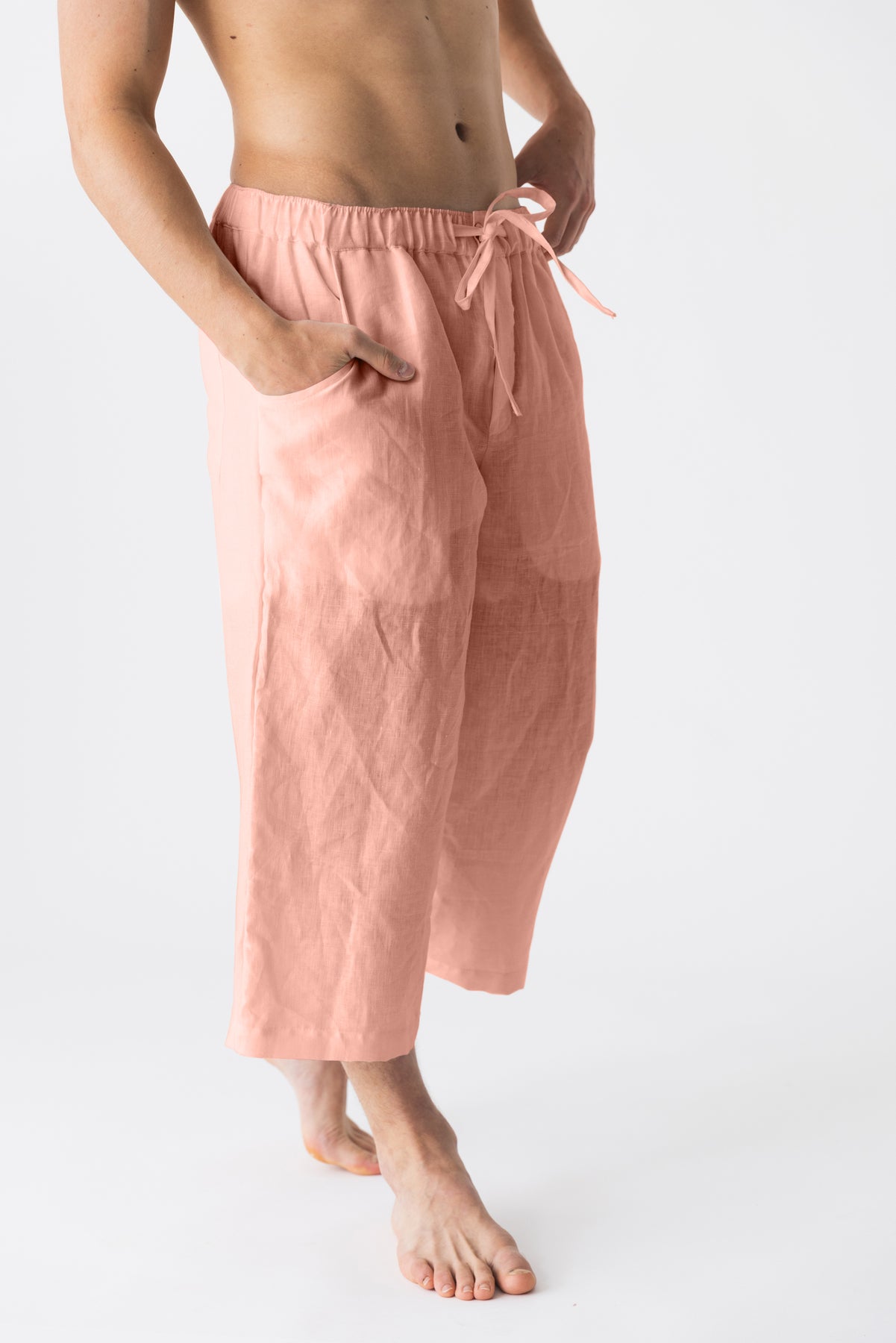 Pantalón capri de lino rosa viejo para hombre - Adriano