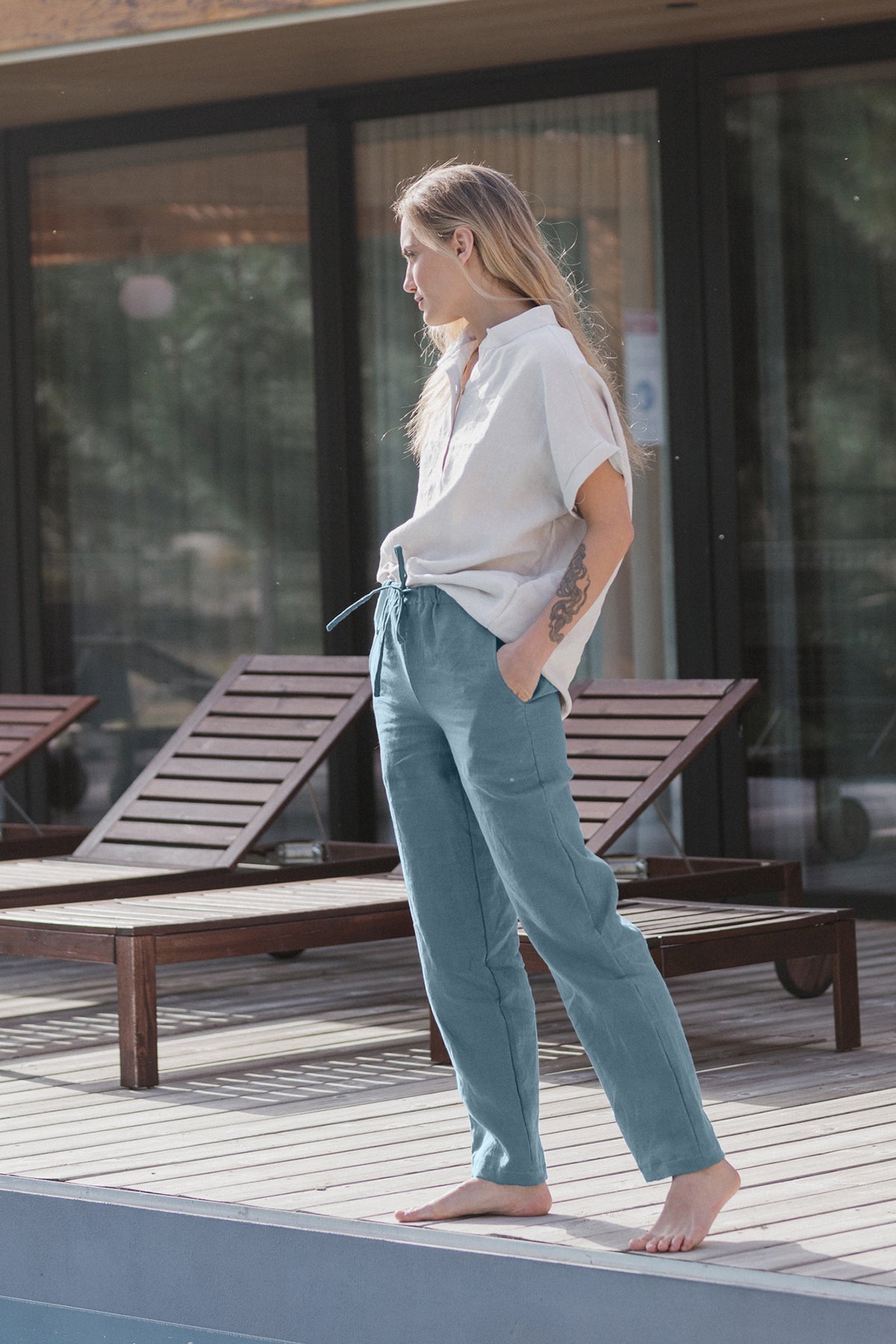 Pantalones informales de lino para mujer "Eliane" (Azul francés)