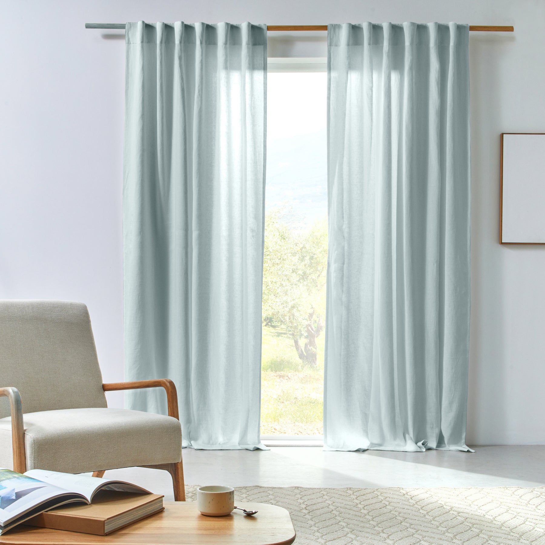 Cortina de lino plegado (hecha a medida) - Azul glaciar