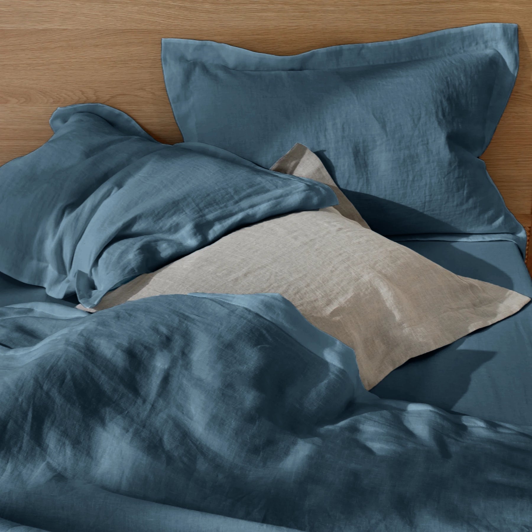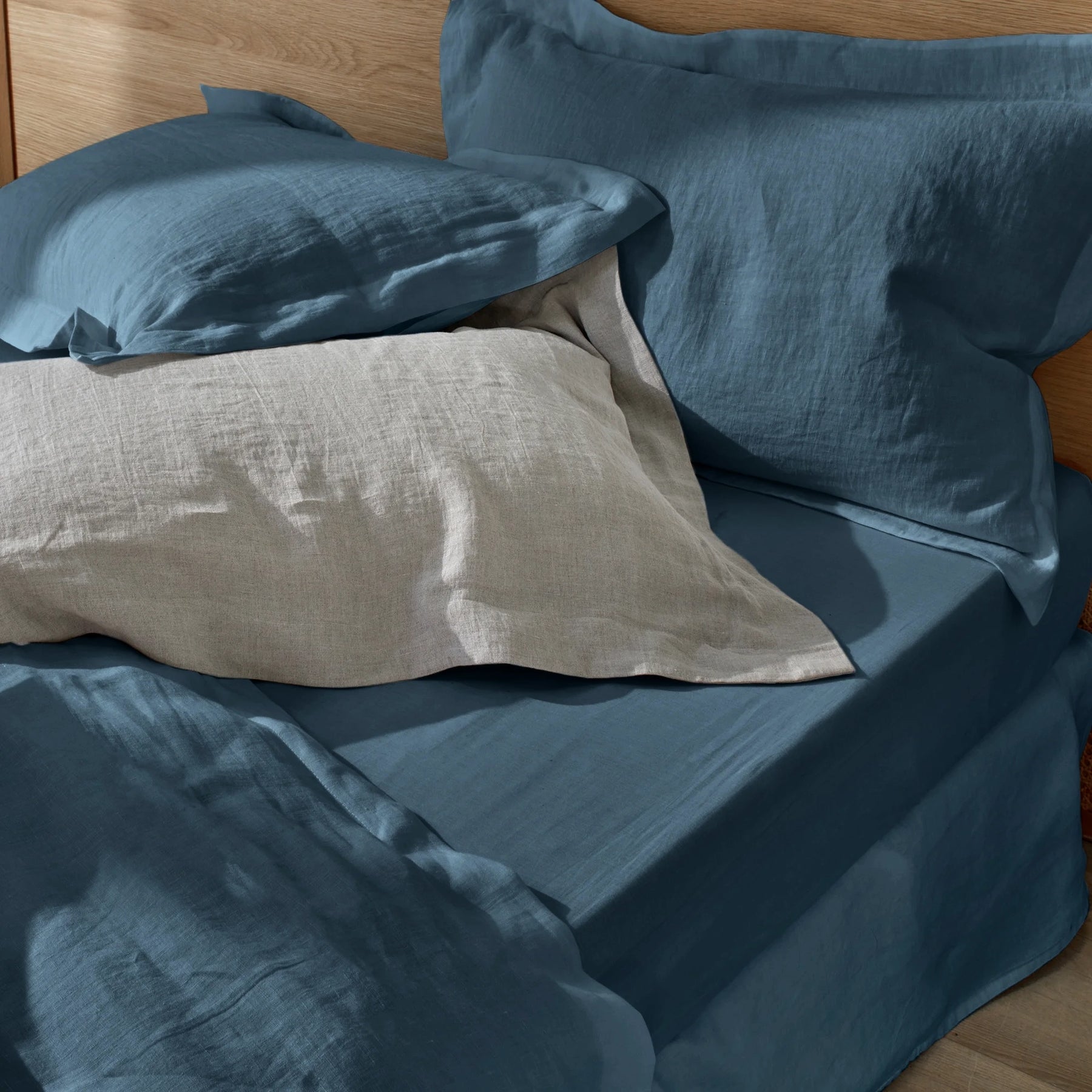 Fundas de almohada de lino con volantes planos (juego de 2), azul francés