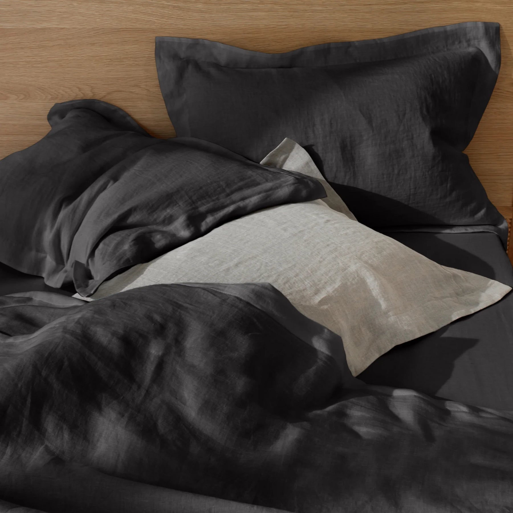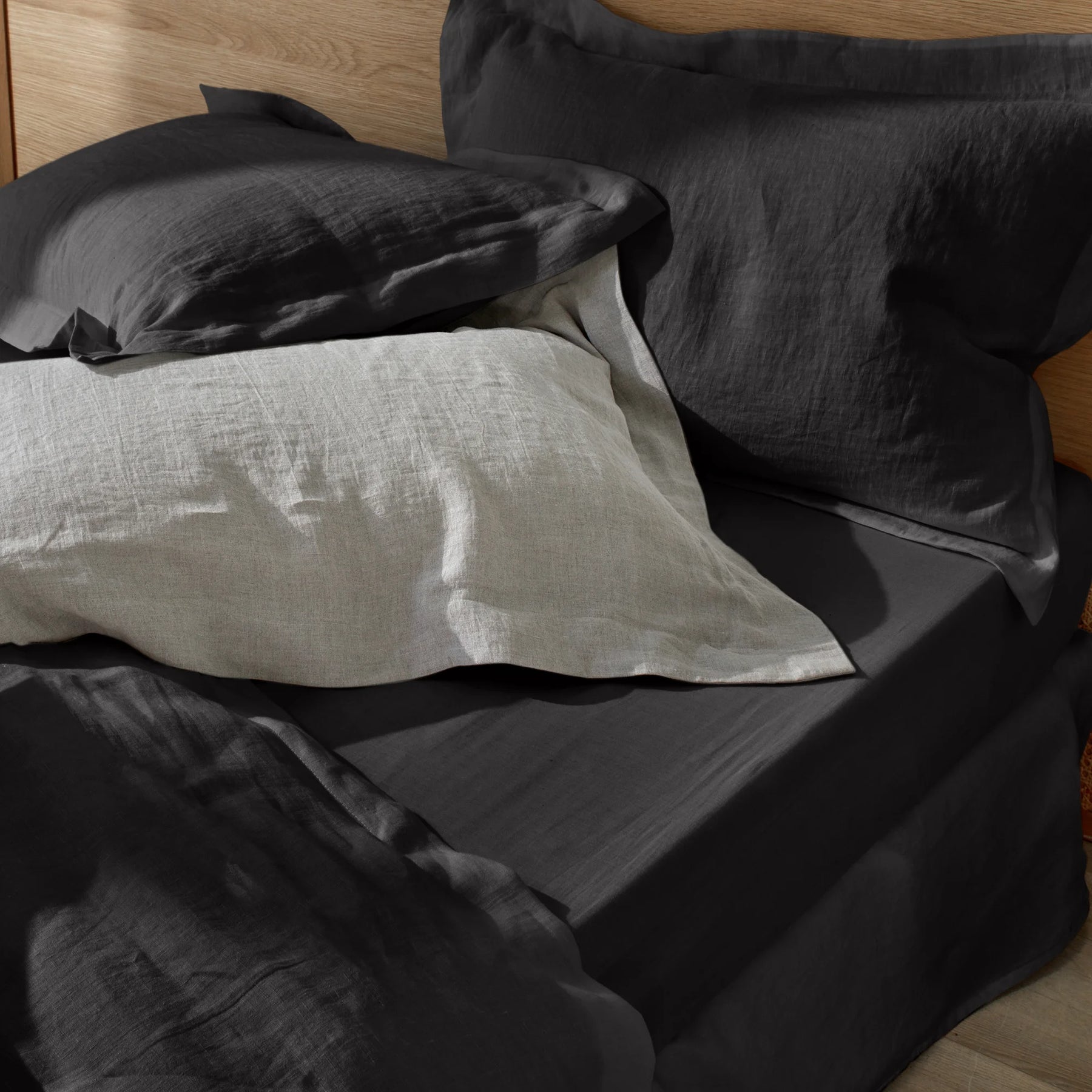Fundas de almohada de lino con volantes planos (juego de 2) Tinta negra